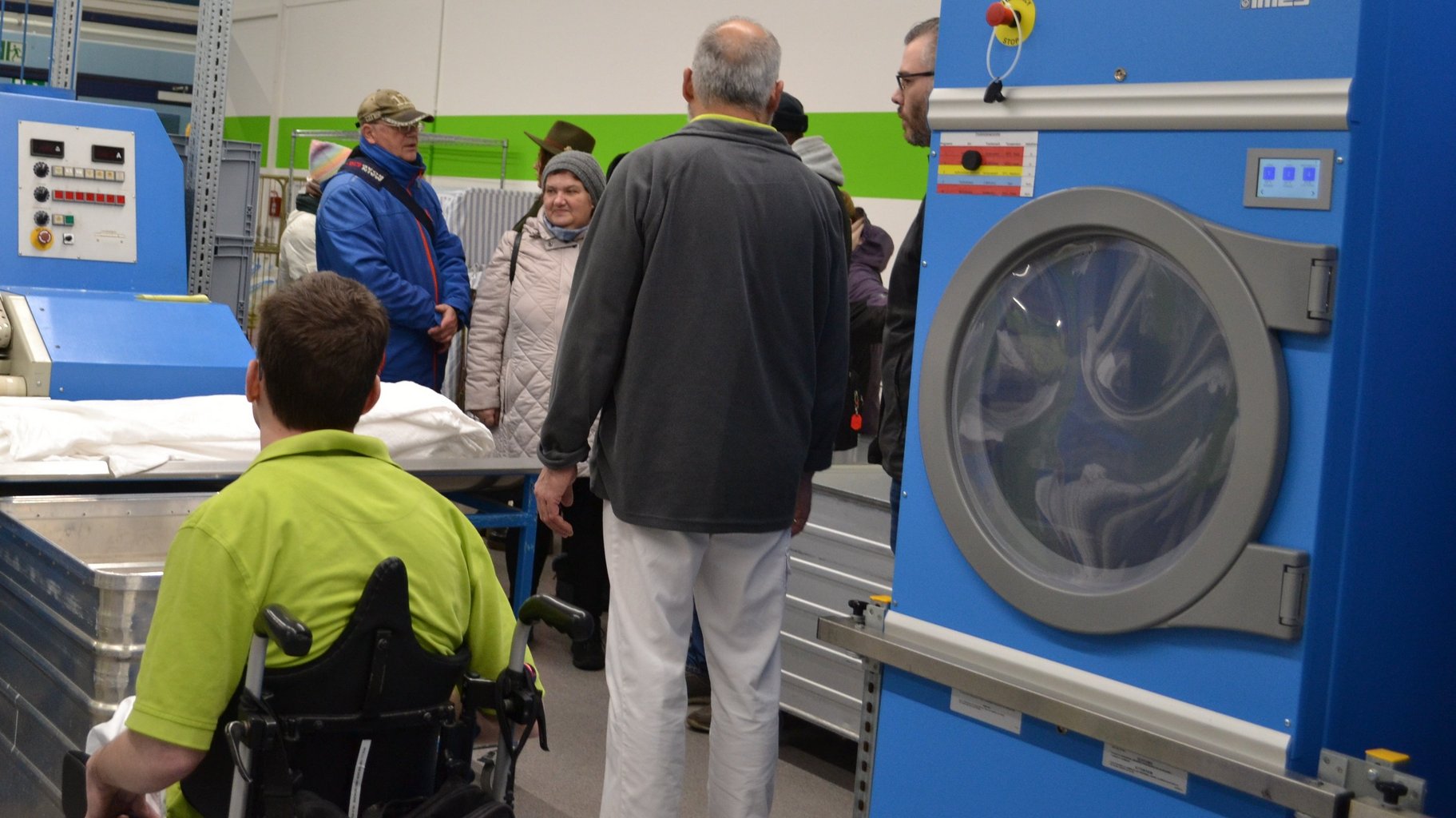 Einen etwas anderen Schulalltag gab es für die zwölf Teilnehmer:innen des Europäischen Sozialfond (ESF) geförderten Projekts „KoBi+“ der VITA Akademie Bremervörde. Sie konnten den Mitarbeitenden der Wäscherei und der Montagegruppe 4 im Vördewerk Bremervörde, der Werkstatt für Menschen mit Behinderungen der LEBENSHILFE Bremervörde/Zeven, über die Schulter schauen. Die Teilnehmenden erhielten dadurch viele Informationen und interessante Einblicke. „Und erlebten die Sprache im Alltag“, sagt Dozentin Corda Kück. Für gewöhnlich unterrichtet sie die Gruppe, bestehend aus Geflüchteten aus der Ukraine, in einem Klassenraum.