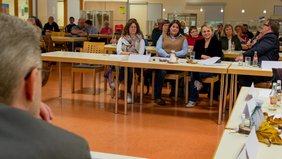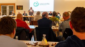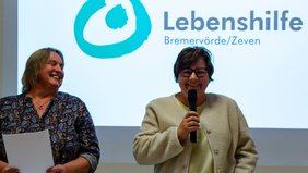 Nachdem die stabilen Bilanzen des Vereines gut verständlich in Leichter Sprache vorgestellt und der Vorstand entlastet worden waren, richtete sich der Blick der Anwesenden zum Abschluss wieder nach vorne. Es ging um ein Thema, das zahlreiche Lebenshilfen und andere Einrichtungen der Eingliederungshilfe in Niedersachsen derzeit umtreibt: die Zukunft der Tagesbildungsstätten. Sylvia Mehrkens-Bartsch, die Schulleitung der HLS, und ihre Stellvertreterin Annabell Wahlers stellten zunächst mit einem ausführlichen Imagefilm die Arbeit der Tagesbildungsstätte vor. Dann erläuterten sie den Vereinsmitgliedern und Gäst:innen vor Ort die Hintergründe der derzeitigen Herausforderungen: Auf Landesebene wird über eine Weiterentwicklung von Tagesbildungsstätten zu Förderschulen in freier Trägerschaft diskutiert. Dadurch sollen diese Einrichtungen zukünftig nicht ausschließlich der Eingliederungshilfe zugeordnet sein. Vielmehr sollen ihre Bildungs- und Lehrtätigkeit endlich gleichwertig anerkannt werden. Die Lebenshilfe begrüßt diesen Prozess, fordert jedoch verbindliche Regelungen zu Personalanerkennung, Weiterqualifizierung, Rahmenbedingungen sowie Finanzierung.
